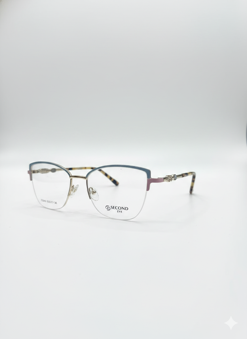 Designed for women who appreciate refined style with modern confidence, the Edge Cat Half-Metal frame from Second Eye blends timeless elegance with contemporary craftsmanship. The sharp yet graceful cat-eye silhouette subtly lifts the face, enhancing natural features while adding a bold, fashion-forward edge. Its half-metal construction creates a clean, airy look that feels light on the face without compromising on strength or durability.